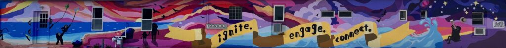 A group of enthusiastic students from The Algoma Venture Academy, a vibrant public charter school, approached Yonder with an inspiring idea: to have us teach a mural class, culminating in a community-painted wall in our city. Throughout the crisp winter months, we embarked on this creative journey together. The eight talented students collaborated passionately, brainstorming and sketching to design a mural that would reflect the spirit and unity of our community.